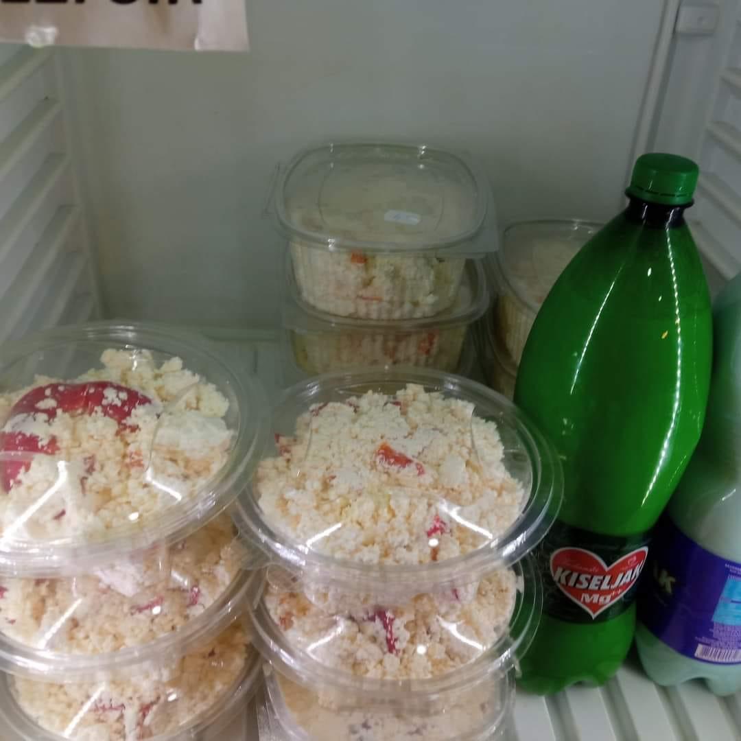 Sudžuk, ćevapi, hamburgeri, doner, pite, burek, maslanica, pečenje, kuhana jela, torte, kolači kao i sve vrste domaćih mliječnih proizvoda.